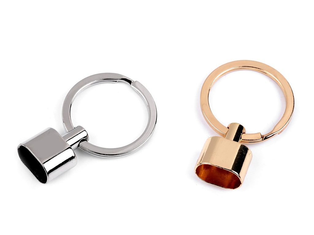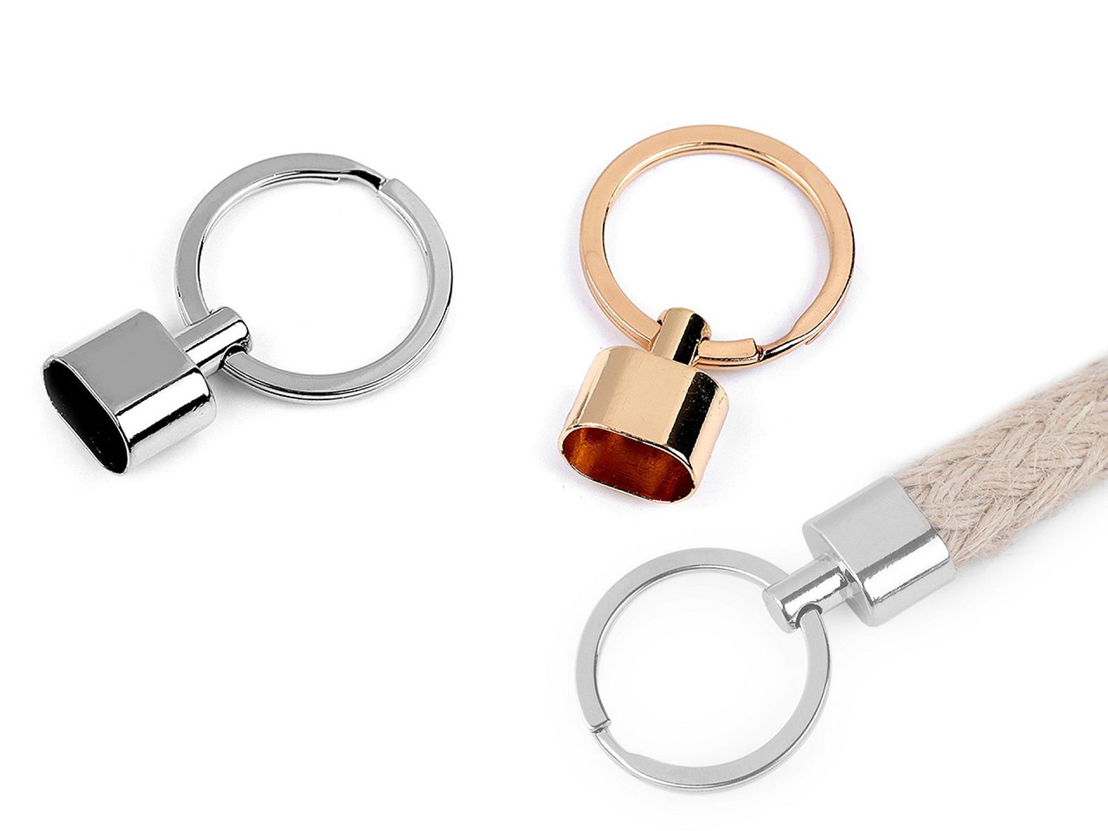Kovová koncovka s kroužkem je vhodná na výrobu klíčenek, ozdobných střapců a přívěsků. Šňůra se do ní vlepuje.Vnitřní rozměry koncovky jsou 8 x 14 mm.