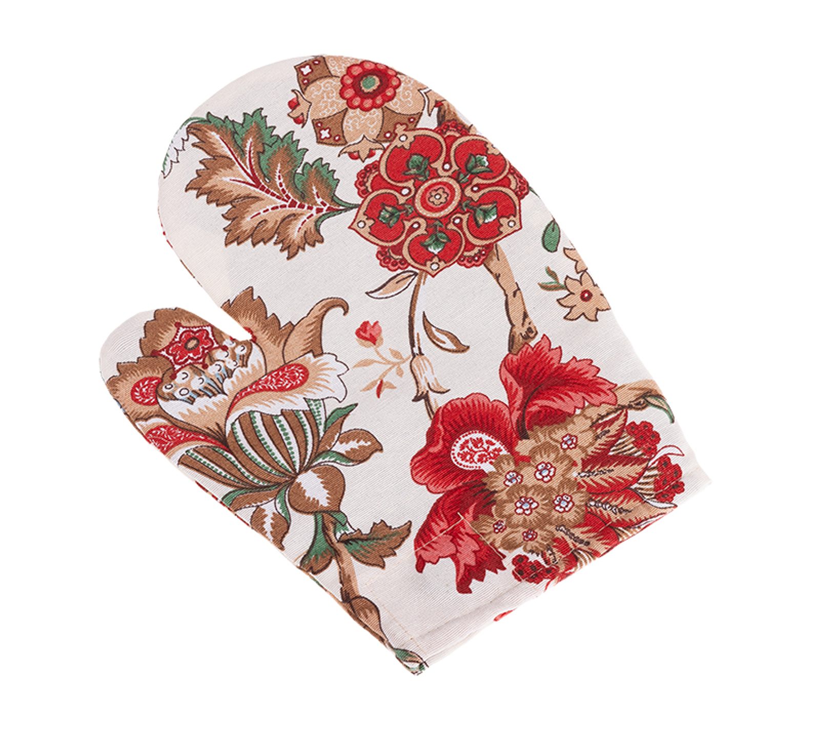 Nepostradatelným pomocníkem každé hospodyňky v kuchyni je kuchyňská chňapka. Použitím chňapky tak zabráníme zbytečnému poranění. Chňapky šijeme ve velikosti 18x28 cm z dostatečně silného materiálu (výplň tvoří netkaná textilie). Tloušťka materiálu tak zaručuje ochranu před popálením při manipulaci s horkým nádobím při vaření. Navíc je chňapka opatřena praktickým magnetem a poutkem na zavěšení. Doporučená teplota praní je na 30°C.- Barva: Květ červená
