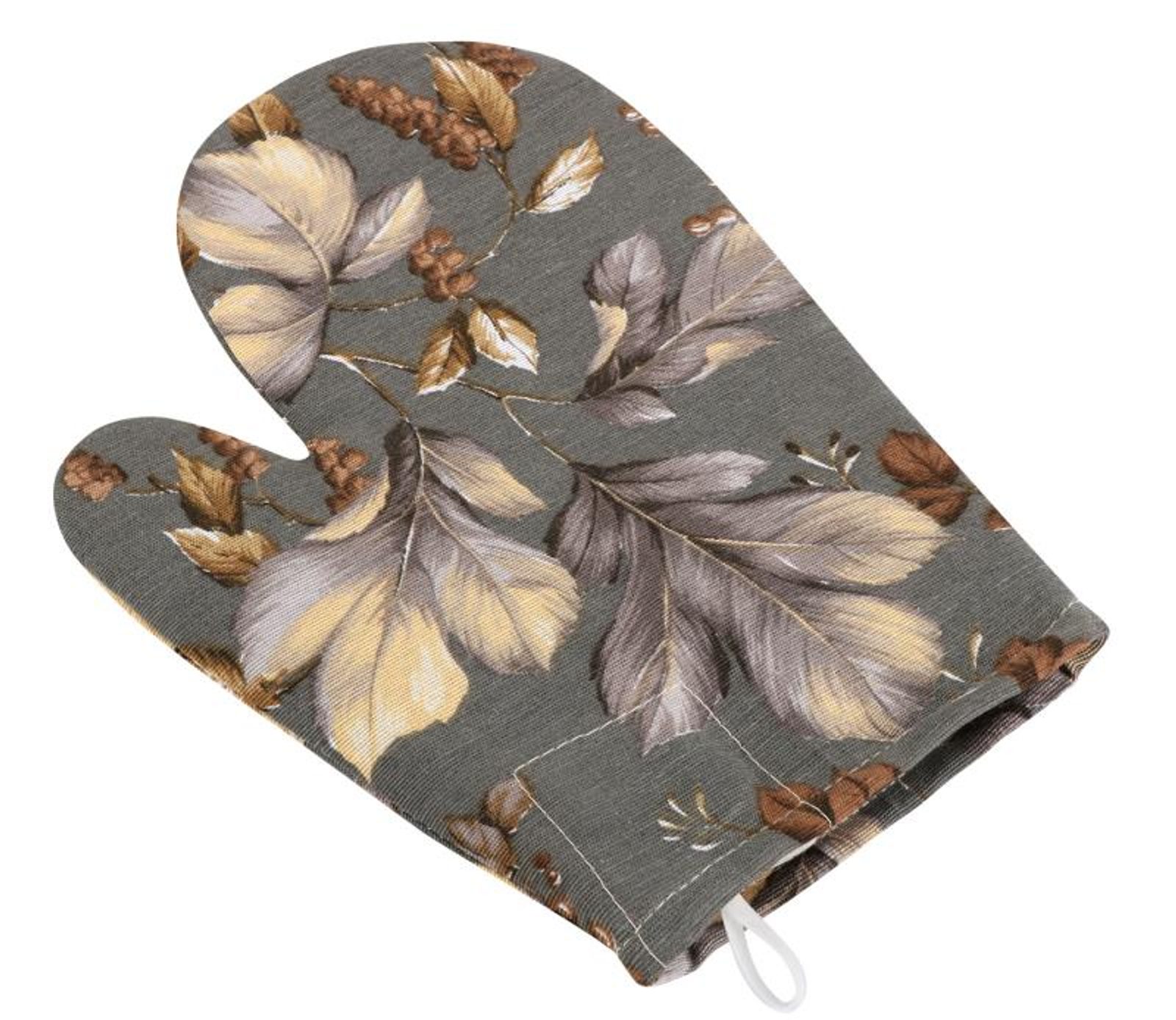Kuchyňská chňapka - 28x18 cm Listí šedá