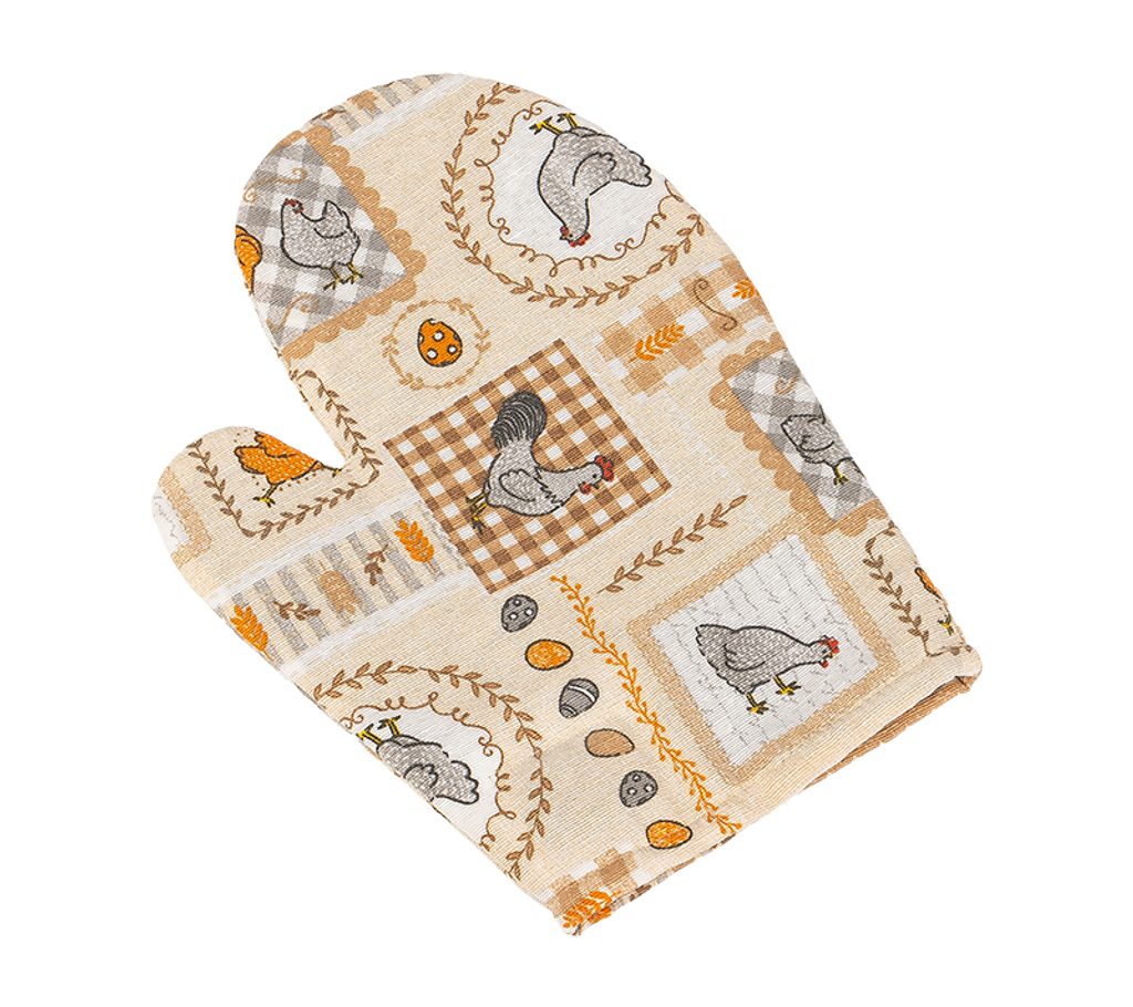 Nepostradatelným pomocníkem každé hospodyňky v kuchyni je kuchyňská chňapka. Použitím chňapky tak zabráníme zbytečnému poranění. Chňapky šijeme ve velikosti 18x28 cm z dostatečně silného materiálu (výplň tvoří netkaná textilie). Tloušťka materiálu tak zaručuje ochranu před popálením při manipulaci s horkým nádobím při vaření. Navíc je chňapka opatřena praktickým magnetem a poutkem na zavěšení. Doporučená teplota praní je na 30°C.- Barva: Slepička oranžová, béžová
