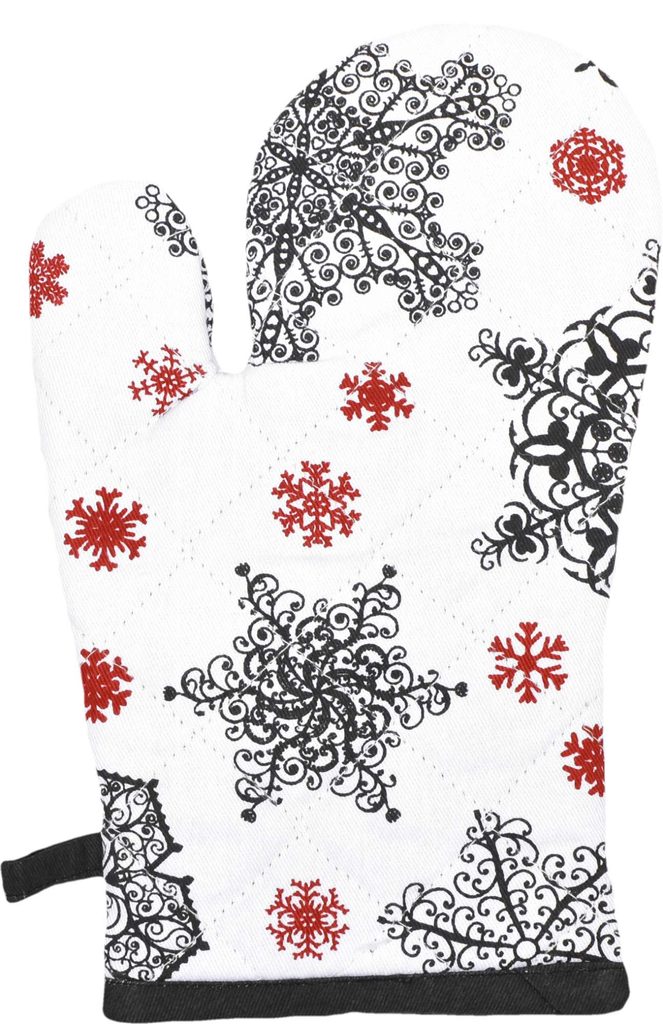 Vánoční kuchyňská chňapka s motivem černých a červených vloček na bílém podkladu. K chňapce je možné dokoupit ve stejném vzoru zástěru, utěrky a povlak na polštářek. Rozměr chňapky je 18x28 cm.- Barva: Bílá, Černá, Červená