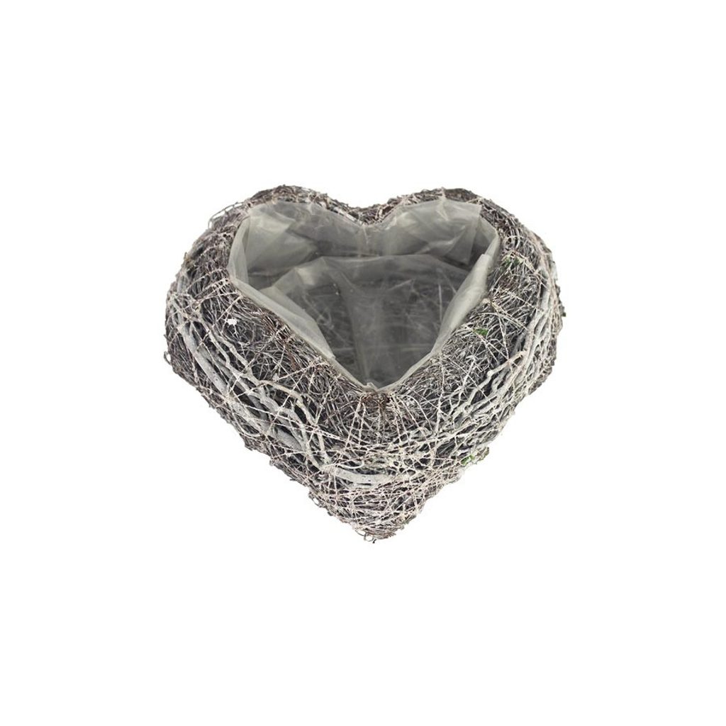 Dekorace k osázení ve tvaru srdce. Rozměry : 19 x 19 cm, výška 6,5 cm. Barva : šedá. Materiál : ratan.Rozměr: 19 x 19 x 6,5 cm