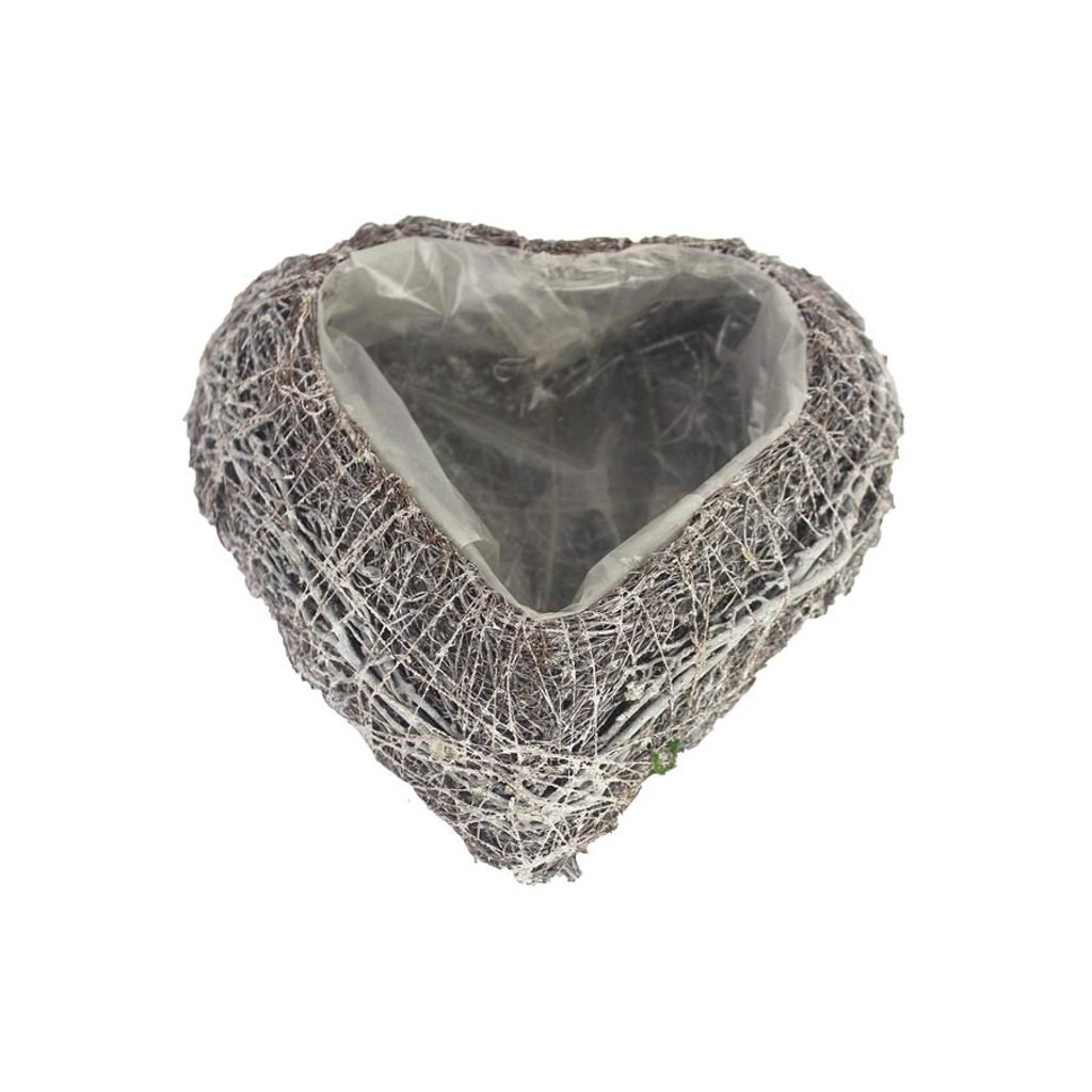 Dekorace k osázení ve tvaru srdce. Rozměry : 22 x 25 cm, výška 8 cm. Barva : šedá. Materiál : ratan.Rozměr: 22 x 25 x 8 cm