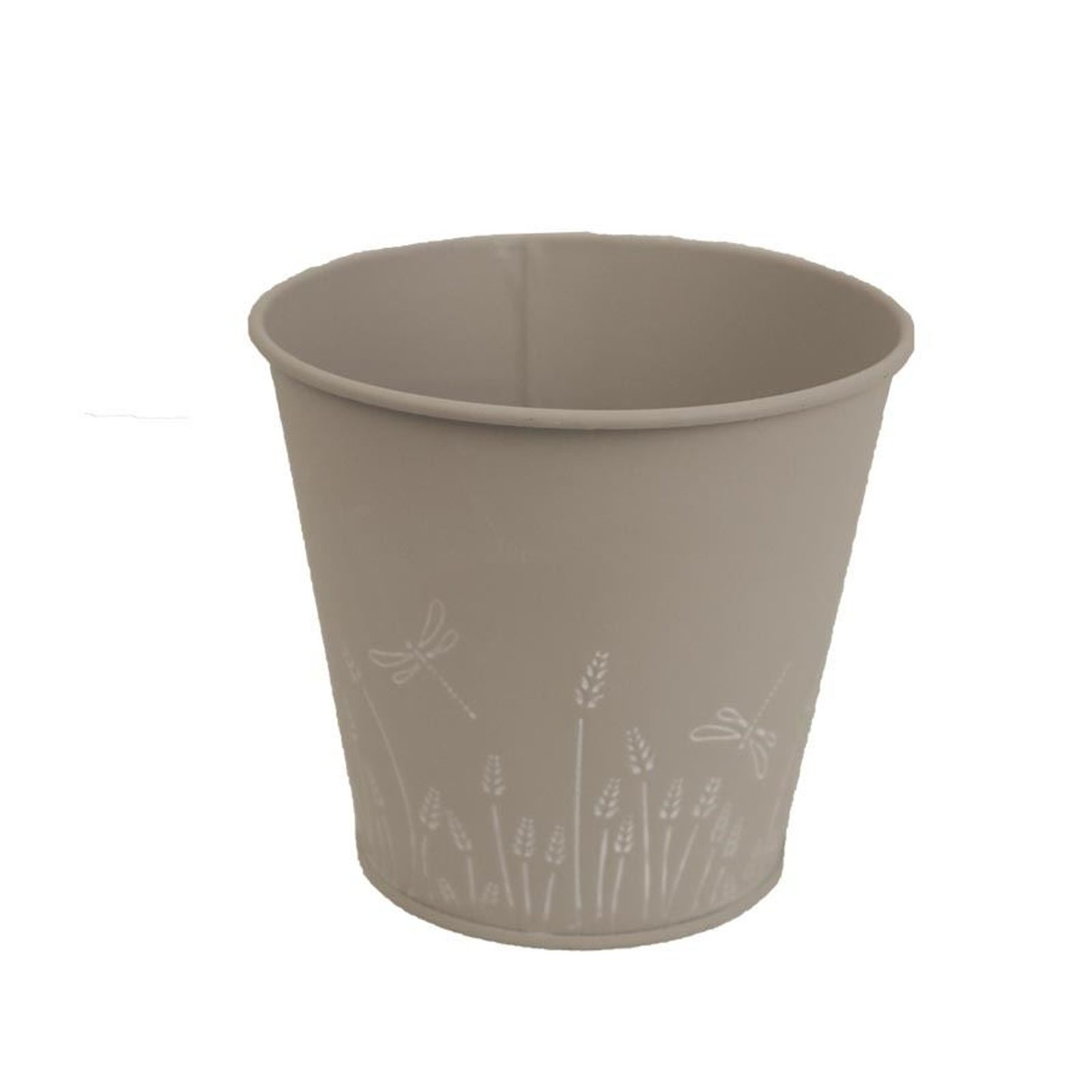 Plechový květináč. Rozměry : průměr 14 cm, výška 12 cm. Barva : kombinace šedá s bílou. Materiál : kov.