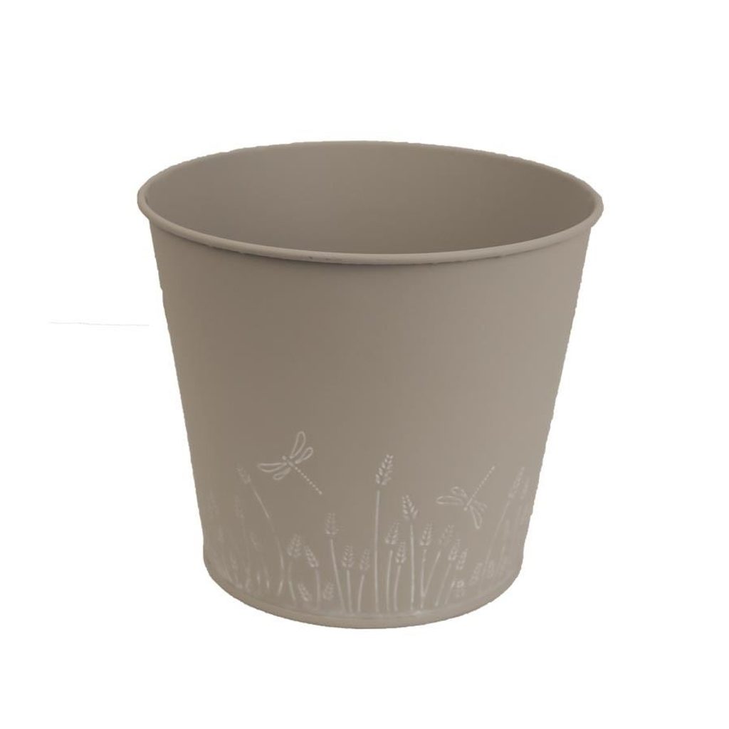 Plechový květináč. Rozměry : průměr 18 cm, výška 16 cm. Barva : kombinace šedá s bílou. Materiál : kov.