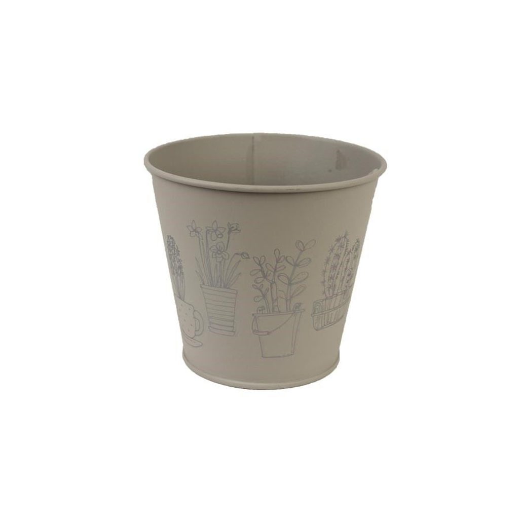 Plechový květináč. Rozměry : průměr 14 cm, výška 12,6 cm. Barva : šedá. Materiál : kov.
