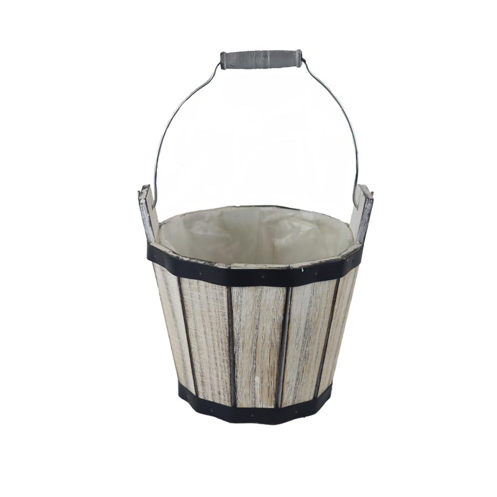 Dřevěný k belík s plastem, kovovým ouškem k osázení.Rozměr: 19x15x14cm