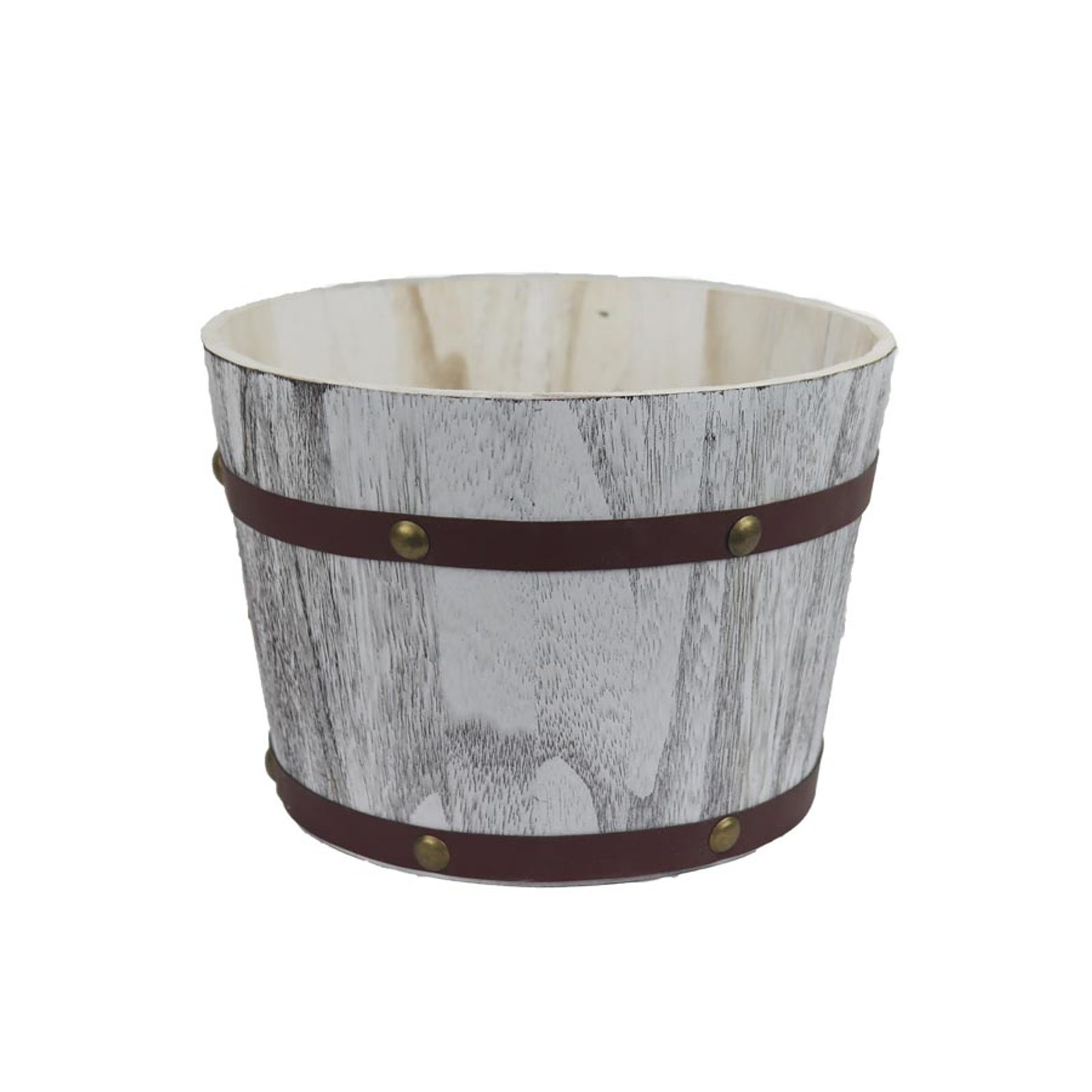 Dřevěný obal na květiny. Rozměry : průměr 24,5 cm, výška 17 cm. Barva : kombinace bílá, hnědá. Materiál na bázi dřeva.