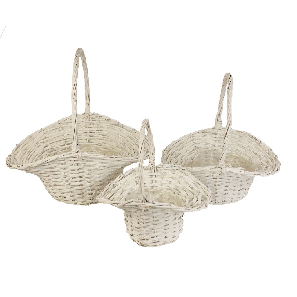 Sada dekoračních proutěných košů s plastem. Sada obsahuje 3 koše. Malý koš má rozměry 27 x 21 cm, výšku 8 - 15 cm, celkovou výšku s uchem 30 cm.…