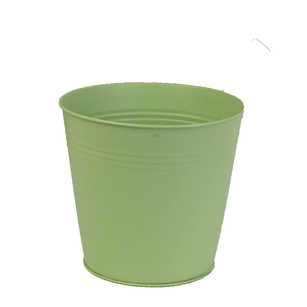 Květináč plechový. Rozměry : průměr 16 cm, výška 15 cm. Dno květináče má průměr 12 cm. Barva : zelená. Materiál : plech.Rozměr: dia 16 x 15 cm