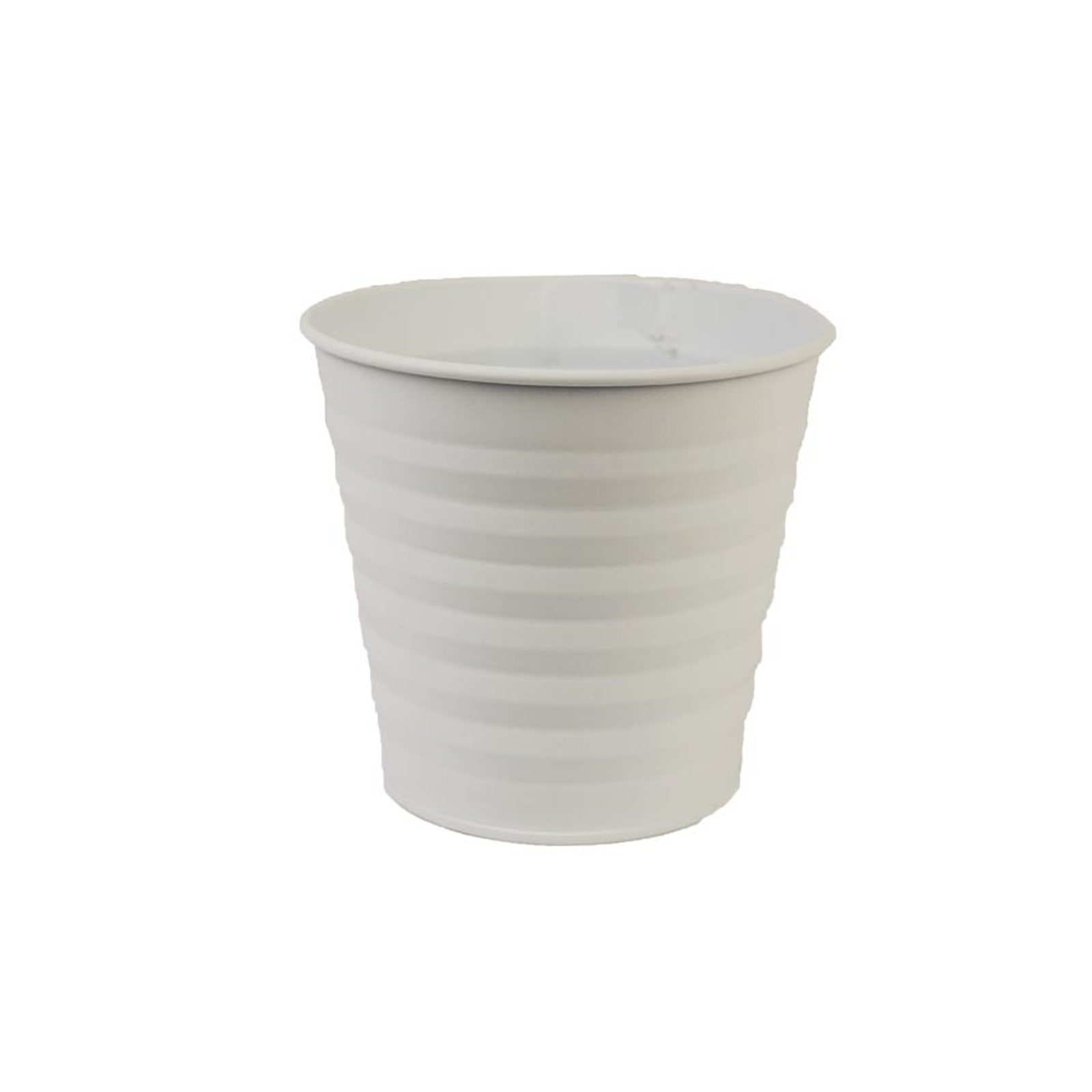 Plechový květináč. Rozměry : průměr 14 cm, výška 12,5 cm. Barva : bílá. Materiál : kov.Rozměr: dia 14 x 12,5 cm