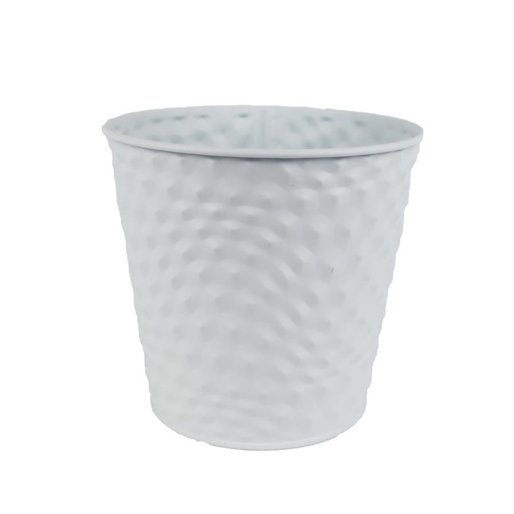 Květináč plechový. Rozměry : průměr 15,5 cm, výška 14,6 cm. Barva : bílá. Materiál : kov.Rozměr: dia 15.5 × 14.6 cm