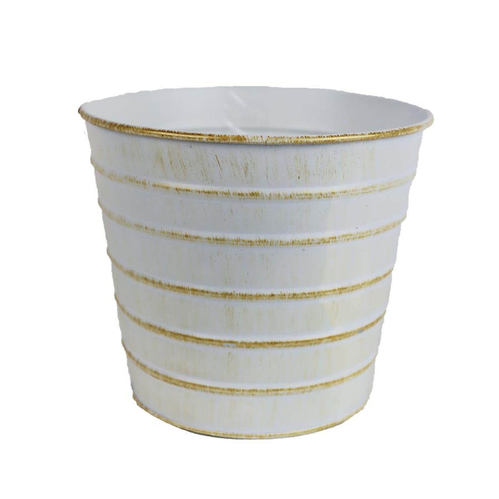 Květináč plechový. Rozměry : průměr 16 cm, výška 14 cm. Barva : kombinace bílá, měděná. Materiál : kov.Rozměr: dia 16 × 14 cm