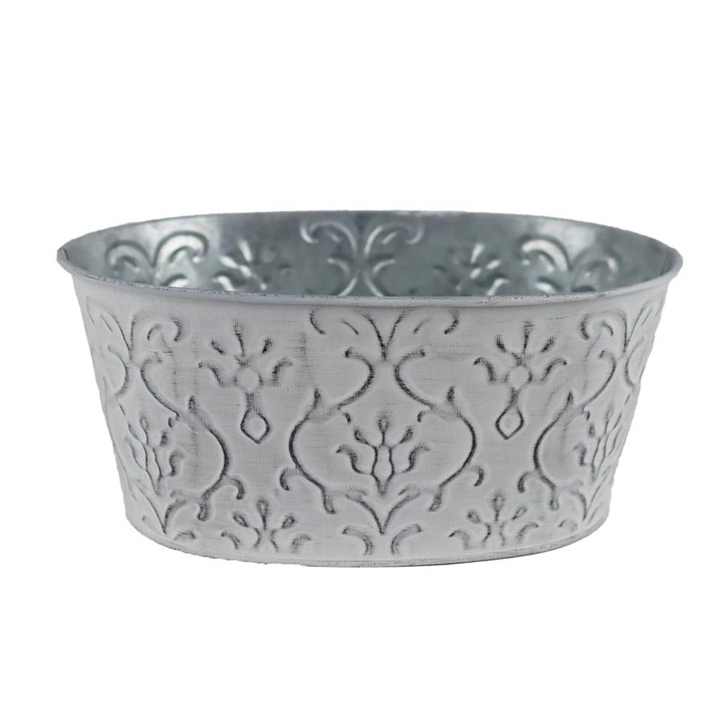Květináč plechový ovál. Rozměry : 20,5 × 14 cm, výška 10 cm. Barva : šedá. Materiál : kov.Rozměr: 20,5 × 14 × 10 cm