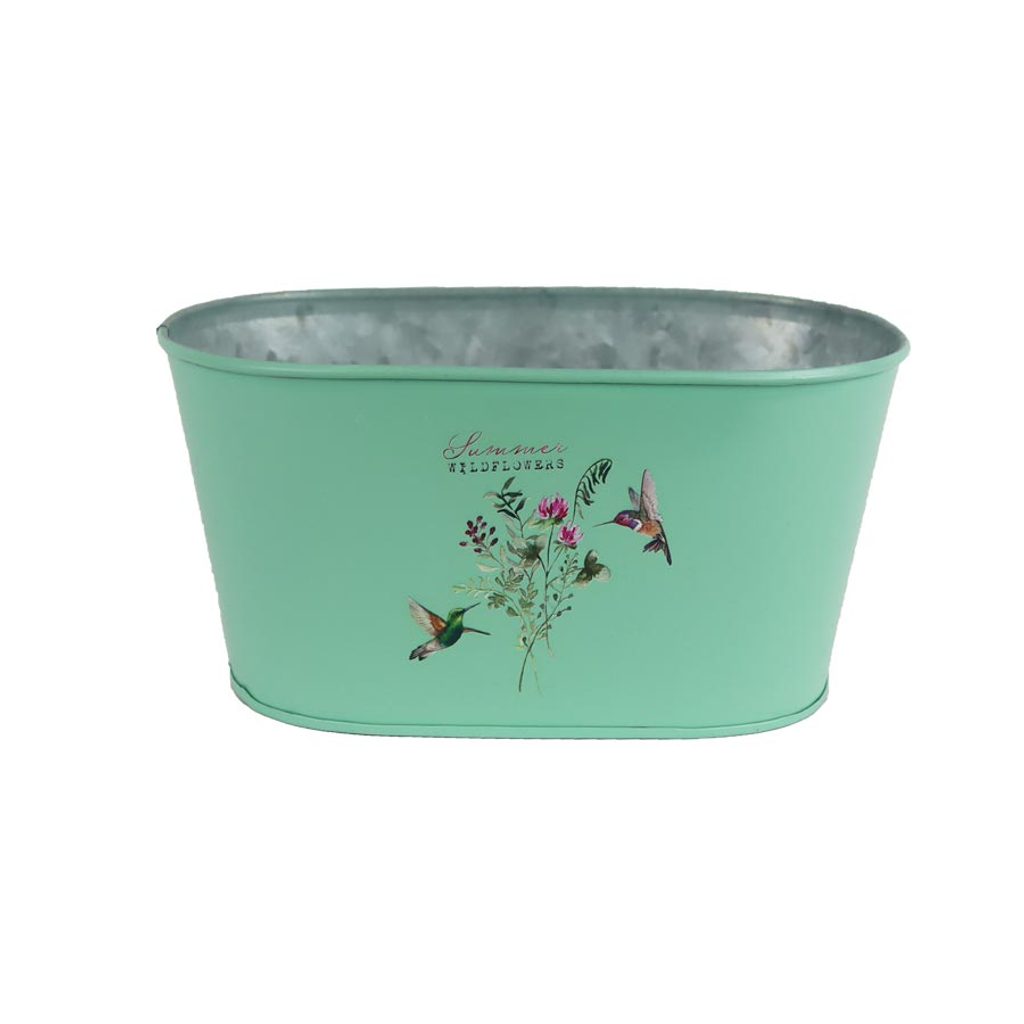 Květináč plechový oválný.Rozměr: 20 x 12 x 10 cm