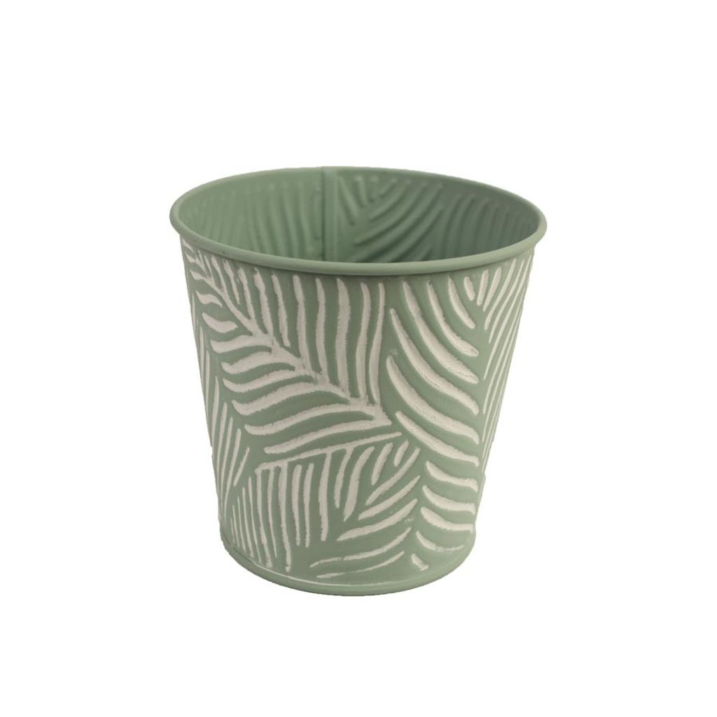 Kovový obal. Obal má průměr 11 cm, výšku 10,6 cm. Barva : kombinace zelená s bílou. Materiál : kov.Rozměr: dia 11 x 10,6 cm