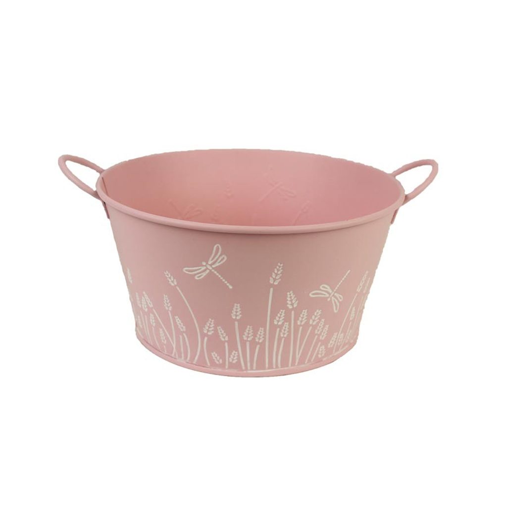 Kovový obal na květiny. Rozměry : průměr 19,5 cm, výška 10 cm, celková výška s uchy 12 cm. Barva : kombinace růžová s bílou. Materiál : kov.Rozměr:…