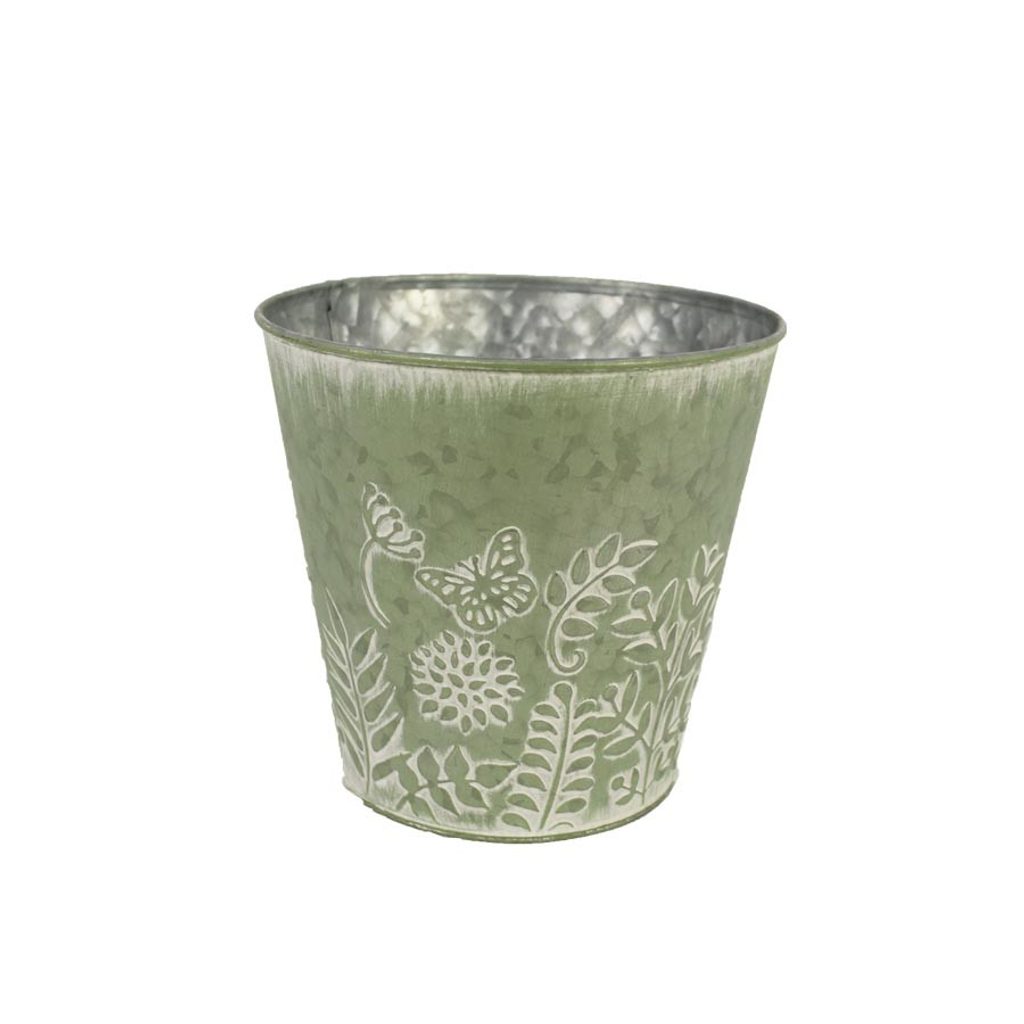 Květináč plechový. Rozměry : průměr 16 cm, výška 15 cm. Barva : kombinace zelená s bílou. Materiál : plech.Rozměr: dia 16 x15 cm