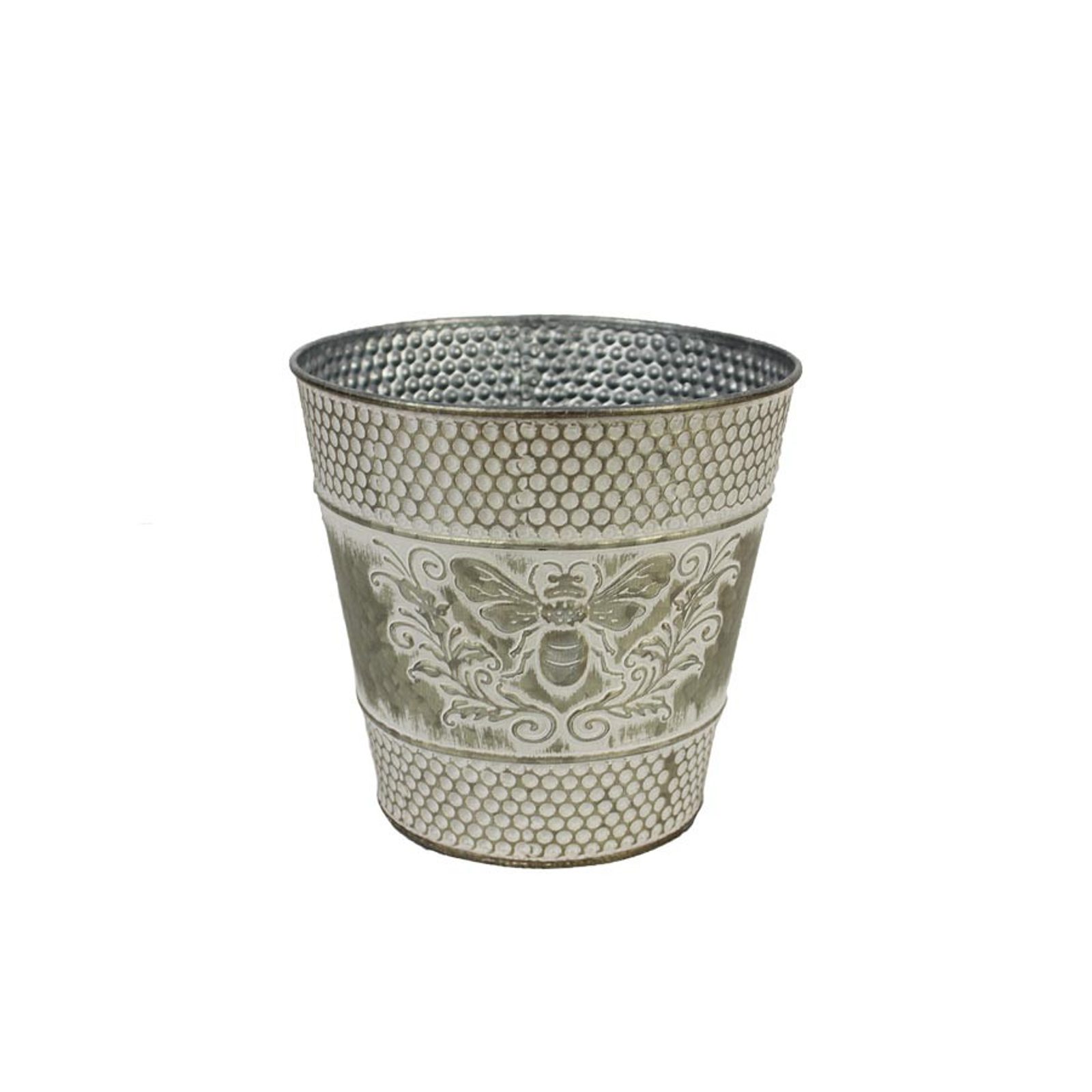 Květináč plechový. Rozměry : průměr 16 cm, výška 15 cm. Barva : kombinace zelená s bílou. Materiál : plech.Rozměr: dia16 x 15 cm