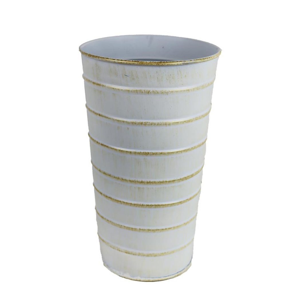 Obal kovový. Rozměry : průměr 13 cm, výška 23 cm. Barva : kombinace bílá, měděná. Materiál : kov.Rozměr: dia 13 × 23 cm