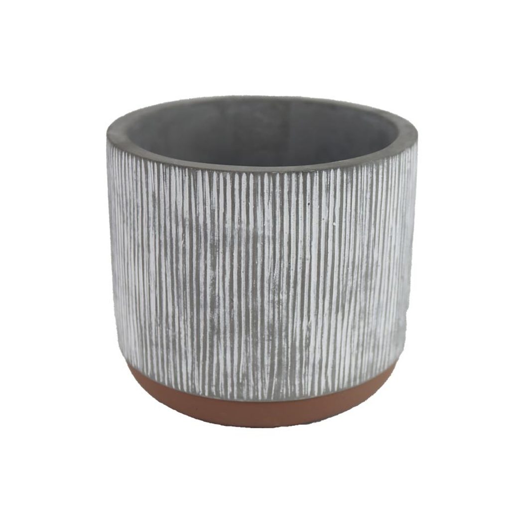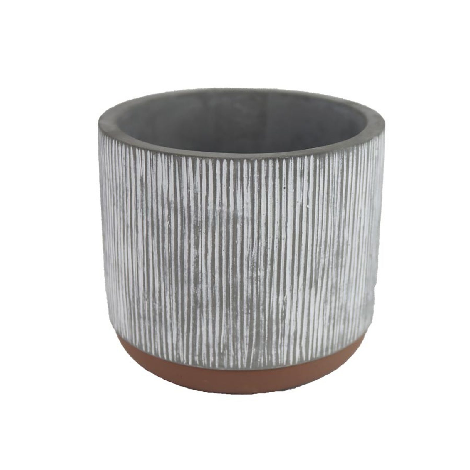 Obal na květiny. Rozměry : průměr 11,5 cm, výška 10 cm. Barva : kombinace šedá s bílou. Materiál : beton.Rozměr: dia 11,5 × 10 cm