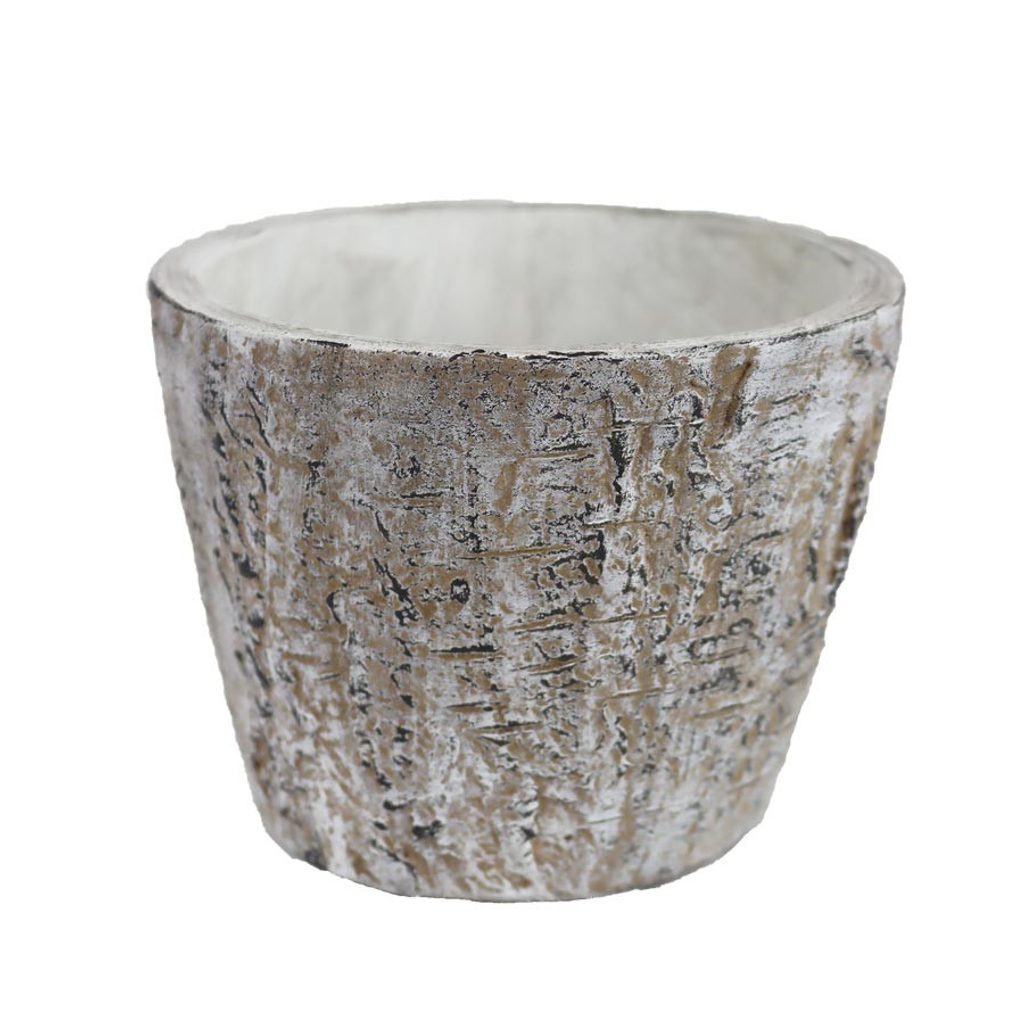 Obal na květiny. Rozměry : 14,2 cm, výška 11 cm. Barva : kombinace hnědá s bílou. Materiál : beton.Rozměr: dia 14,2 × 11 cm