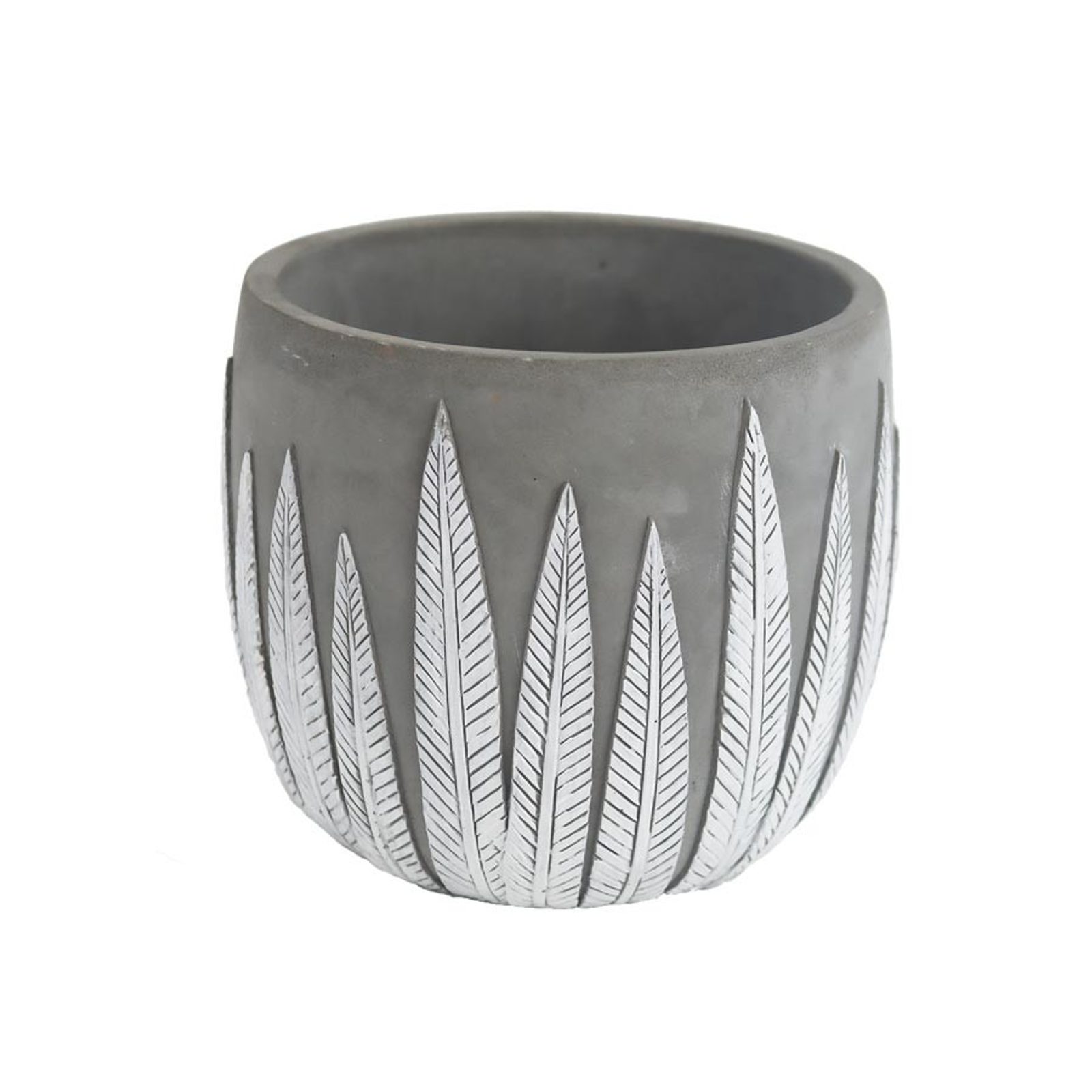 Obal na květiny. Rozměry : průměr 13,5 cm, výška 12,5 cm. Barva : kombinace šedá s bílou. Materiál : beton.Rozměr: dia 13.5 × 12.5 cm