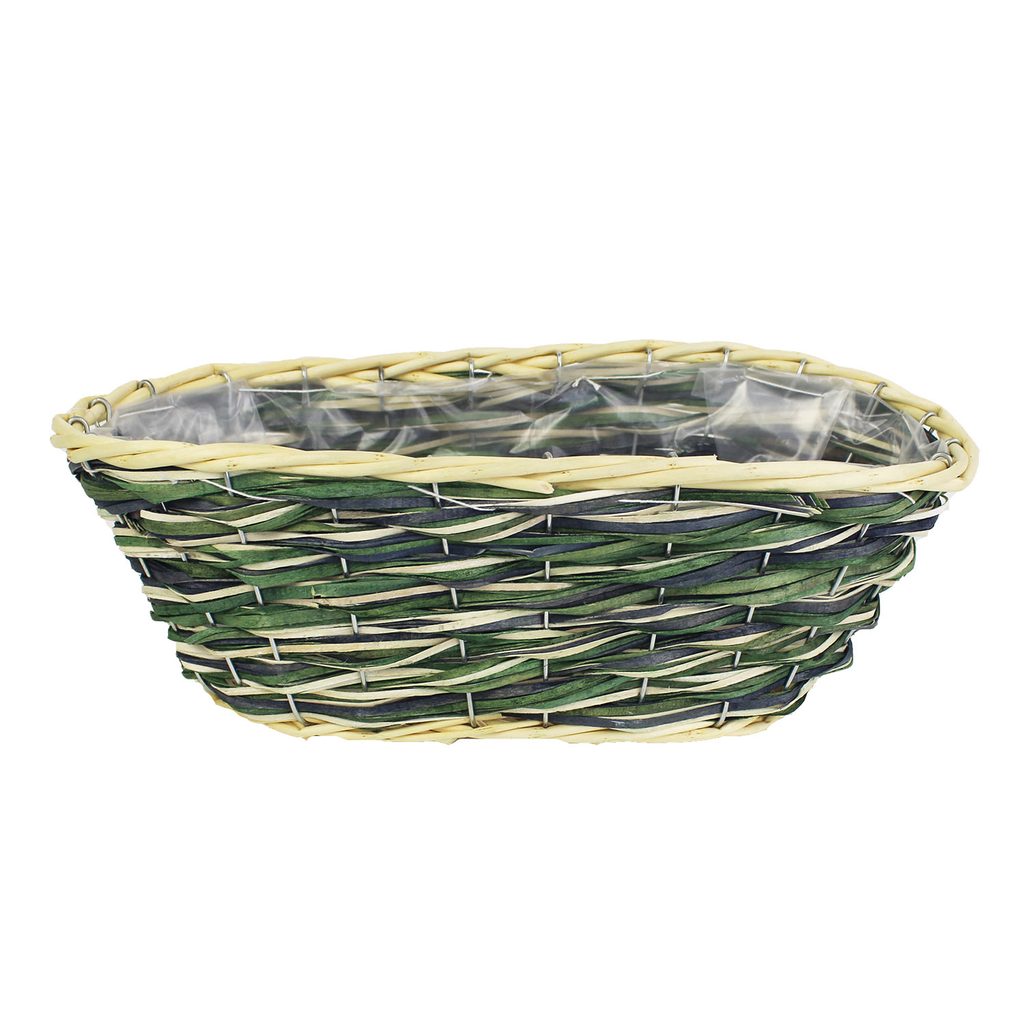 Proutěný obal s plastem. Obal má rozměry 29 x 16 cm, výšku 12 cm. Barva : zelená. Materiál : proutí, plast.Rozměr: 29 x 16 x 12 cm