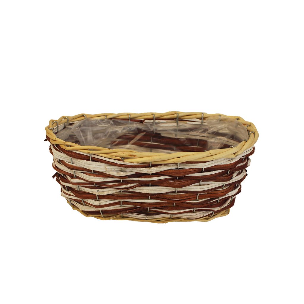 Proutěný obal s plastem. Obal má rozměry 24 x 14 cm, výšku 10 cm. Barva : hnědá. Materiál : proutí, plast.Rozměr: 24 x 14 x 10 cm