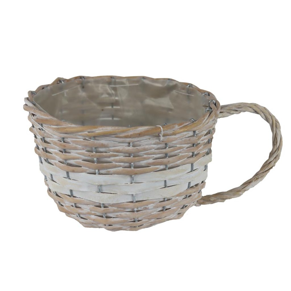 Obal s plastem. Rozměry : průměr 20 cm, výška 12 cm. Barva : kombinace hnědá s bílou. Materiál : proutí, plast.Rozměr: dia 20 × 12 cm