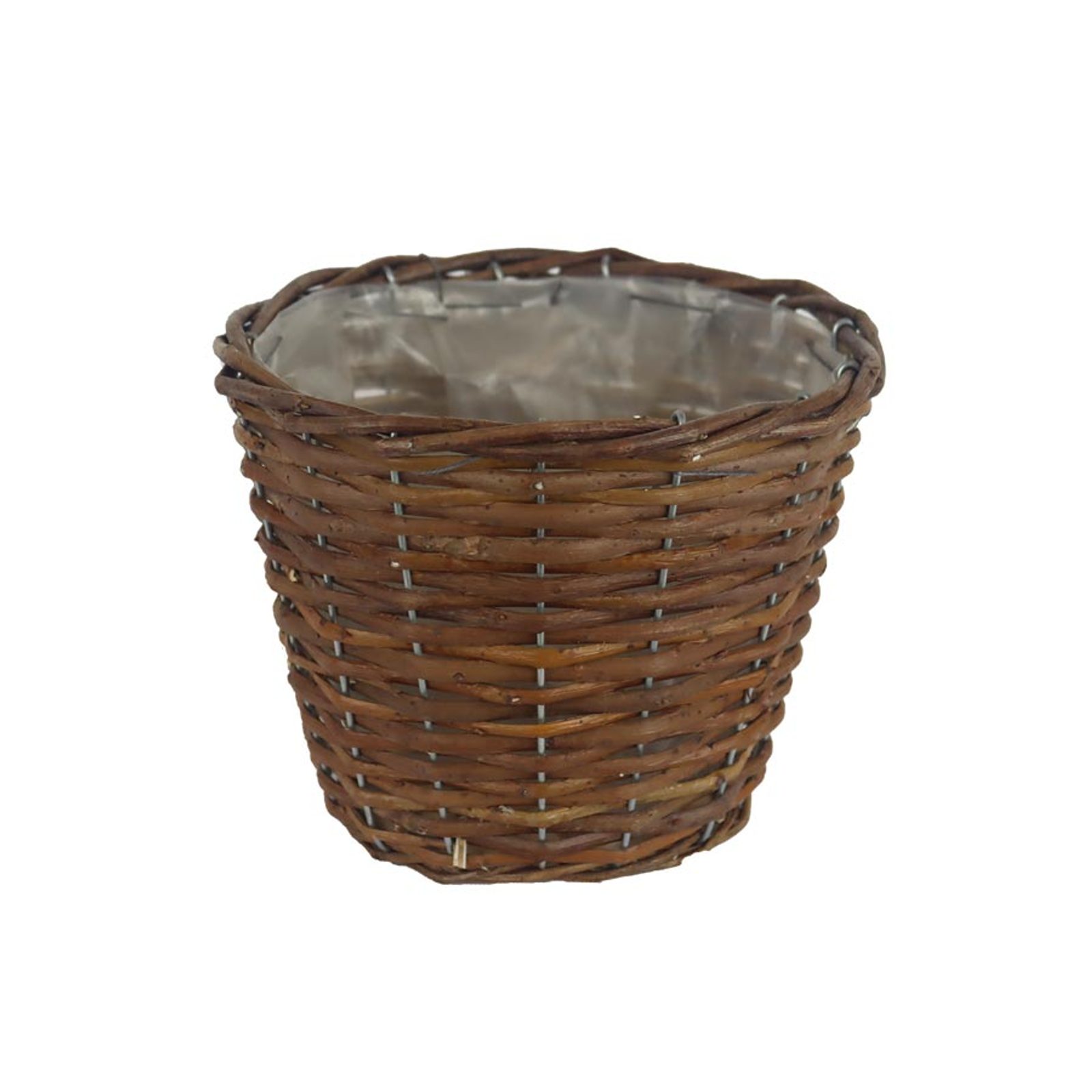 Obal s plastem hnědý. Rozměry : průměr 18 cm, výška 14 cm. Barva : hnědá. Materiál : proutí, plast.Rozměr: dia 18 × 14 cm