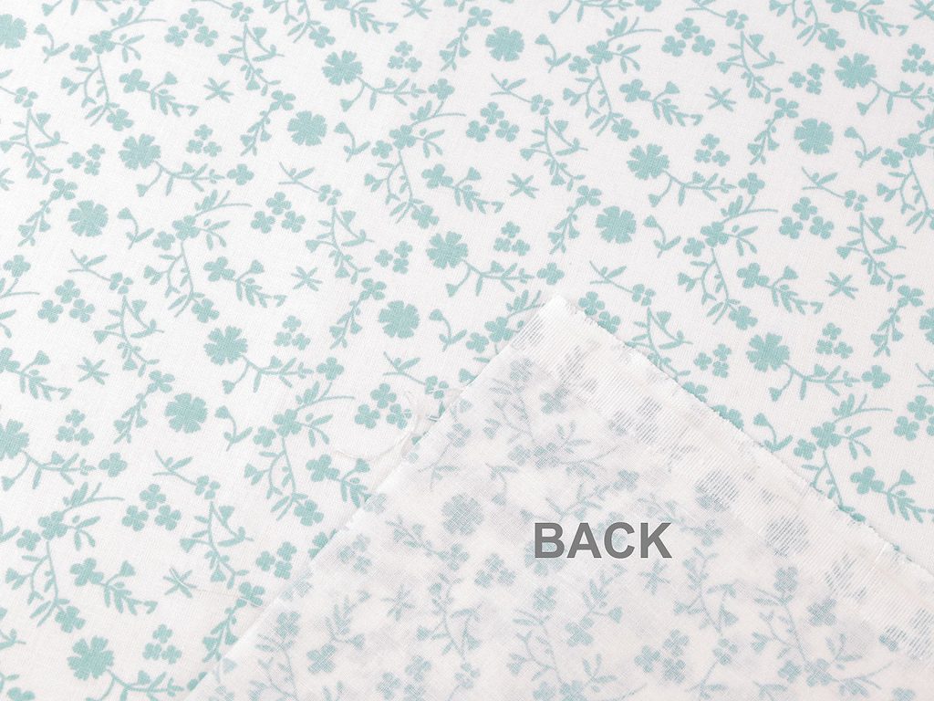 Bavlněnou látku zdobí potisk drobných květin. Je vhodná na šití polštářů, povlečení, závěsů, ubrusů, tašek, pytlíků, zástěr apod.