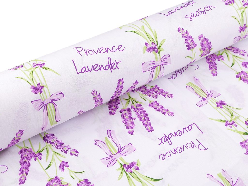 Bavlněnou látku s levandulemi využijete na šití polštářů, povlečení, závěsů, ubrusů, tašek, pytlíků apod. Je oblíbená na interiérové doplňky v provensálském stylu.- Šíře:: 160 cm