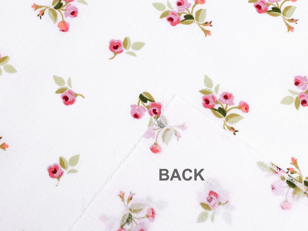 Bavlněnou látku zdobí potisk drobných růžiček. Vynikne na povlečení, ubrusech, polštářích, ale můžete z ní ušít i tašky, pytlíky apod.- Šíře:: 160 cm