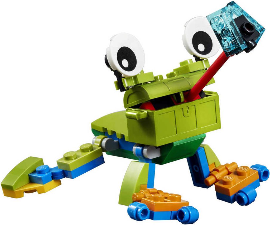 Obsah balení: barevné kostičky, doplňky: trojzubec, pár ploutví, helma, vysílačka, fotoaparát, mapa, letecká helma, kuřecí stehýnko, sklo, nanuk, ryba a had, speciální plochá destička, 2 minifigurky
