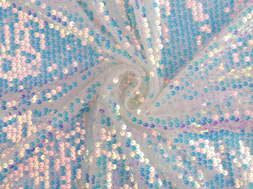 Tyl s flitry má neskutečně zajímavé odlesky. Pruží po šíři. Skvěle se hodí na šití tanečních a karnevalových kostýmů (mořská panna, jednorožec apod.), společenských oděvů i plesových doplňků.Látka je průhledná, doporučujeme ji podšít.