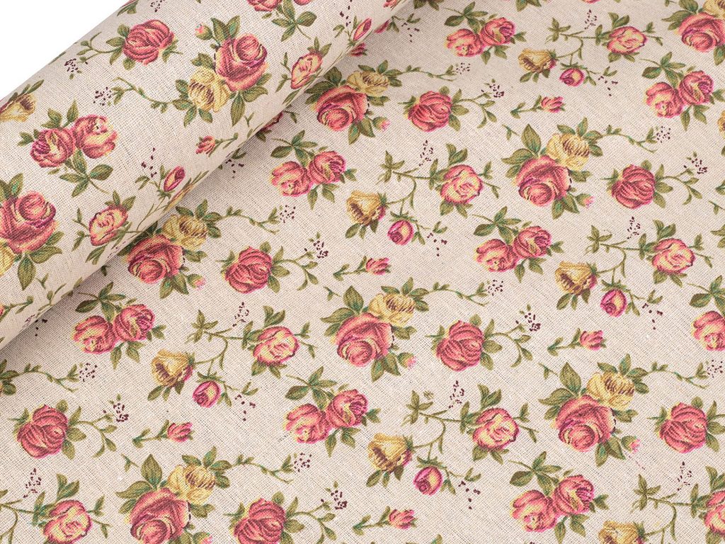 Bavlněná metráž / imitace lnu hrubší, růže METRÁŽ