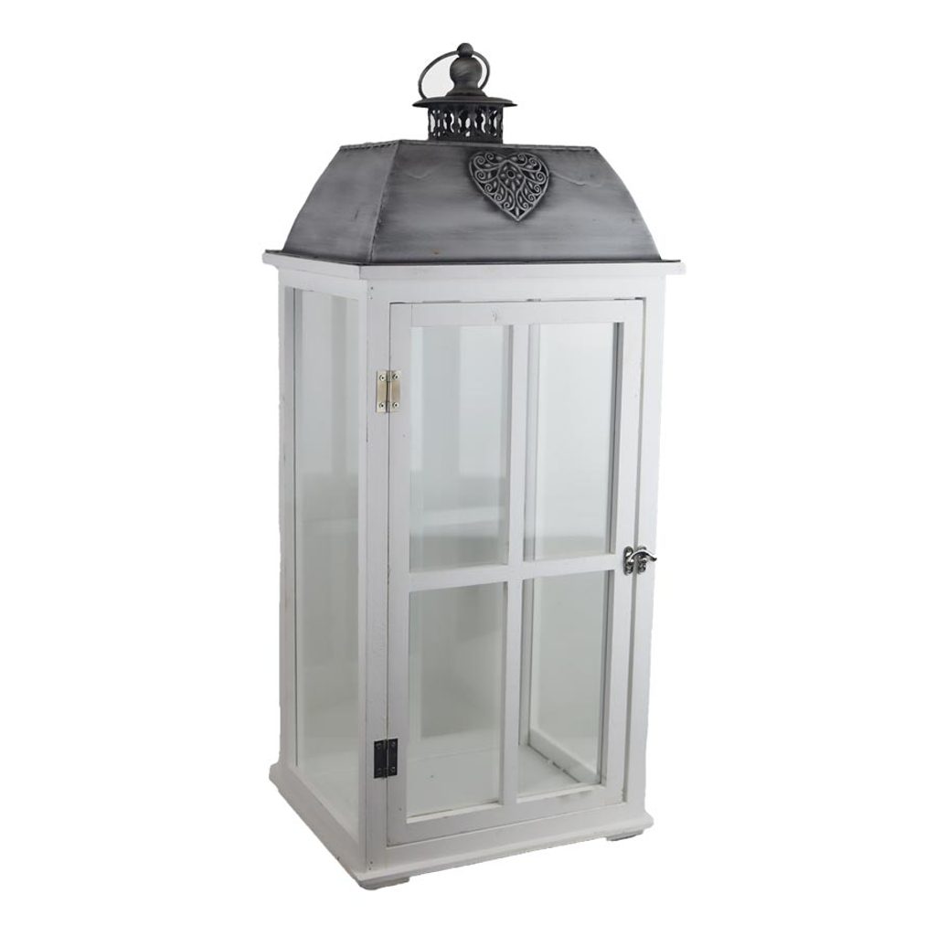 Dřevěná lucerna velká. Rozměry : 26 x 20 cm, výška 62,5 cm. Barva : kombinace bílá, šedá. Materiál : dřevo, sklo, kov. Vneste do svého domova či zahrady kouzlo orientální stylu. Tato lucerna je vyrobena ze dřeva a skleněných panelů, horní část je z kovu. Lucerna má praktickou rukojeť, která vám usnadní její přenášení mezi domem a zahradou.