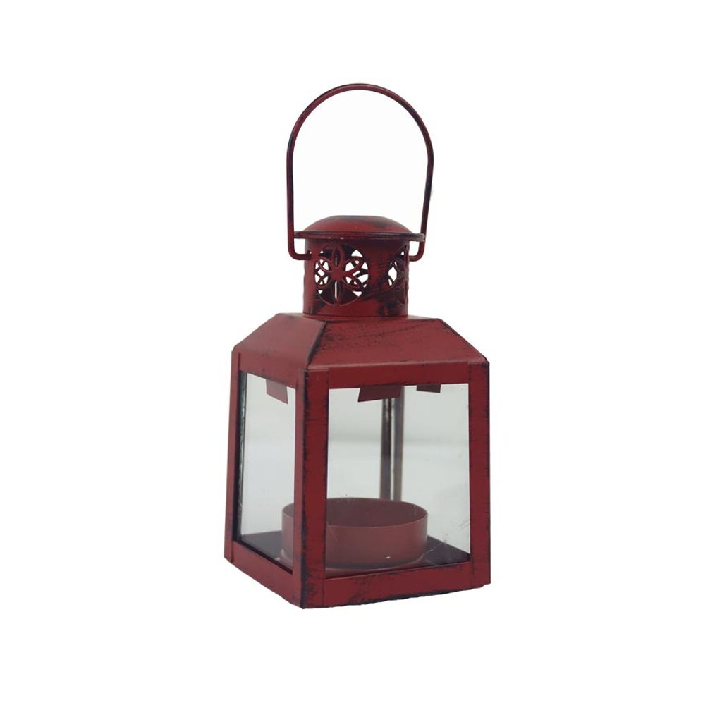 Lucerna kovová. Rozměry : 6,2 x 6,2 cm, výška 11 cm. Barva : červená. Materiál : kov, sklo.Rozměr: 6,2 × 6,2 × 11 cm