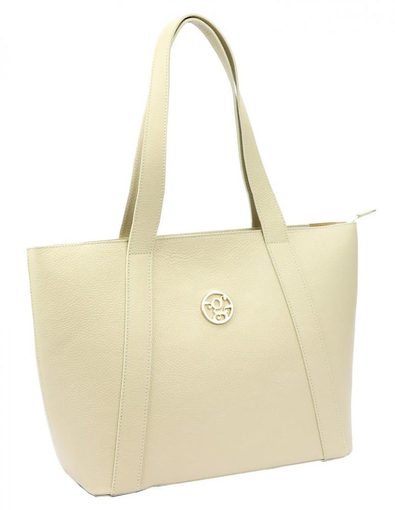 Kožená velká dámská shopper kabelka přes rameno krémová