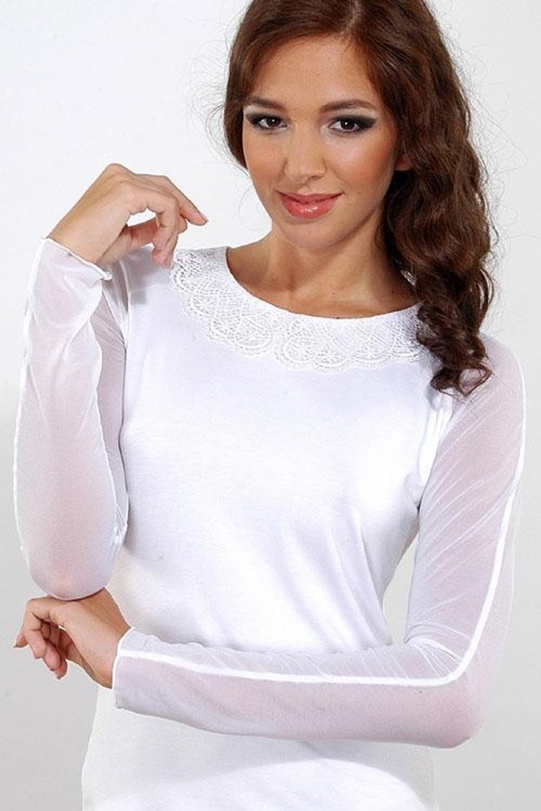 V našem e-shopu Peknydarek.cz nabízíme široký výběr halenek rozmanitých střihů a designů. Velmi oblíbená je kupříkladu dámská halenka s označením Kelly. Nabízí jednoduché provedení středu halenky a krajkové dlouhé rukávy. Můžete ji zakoupit jak v bílém, tak i černém provedení.