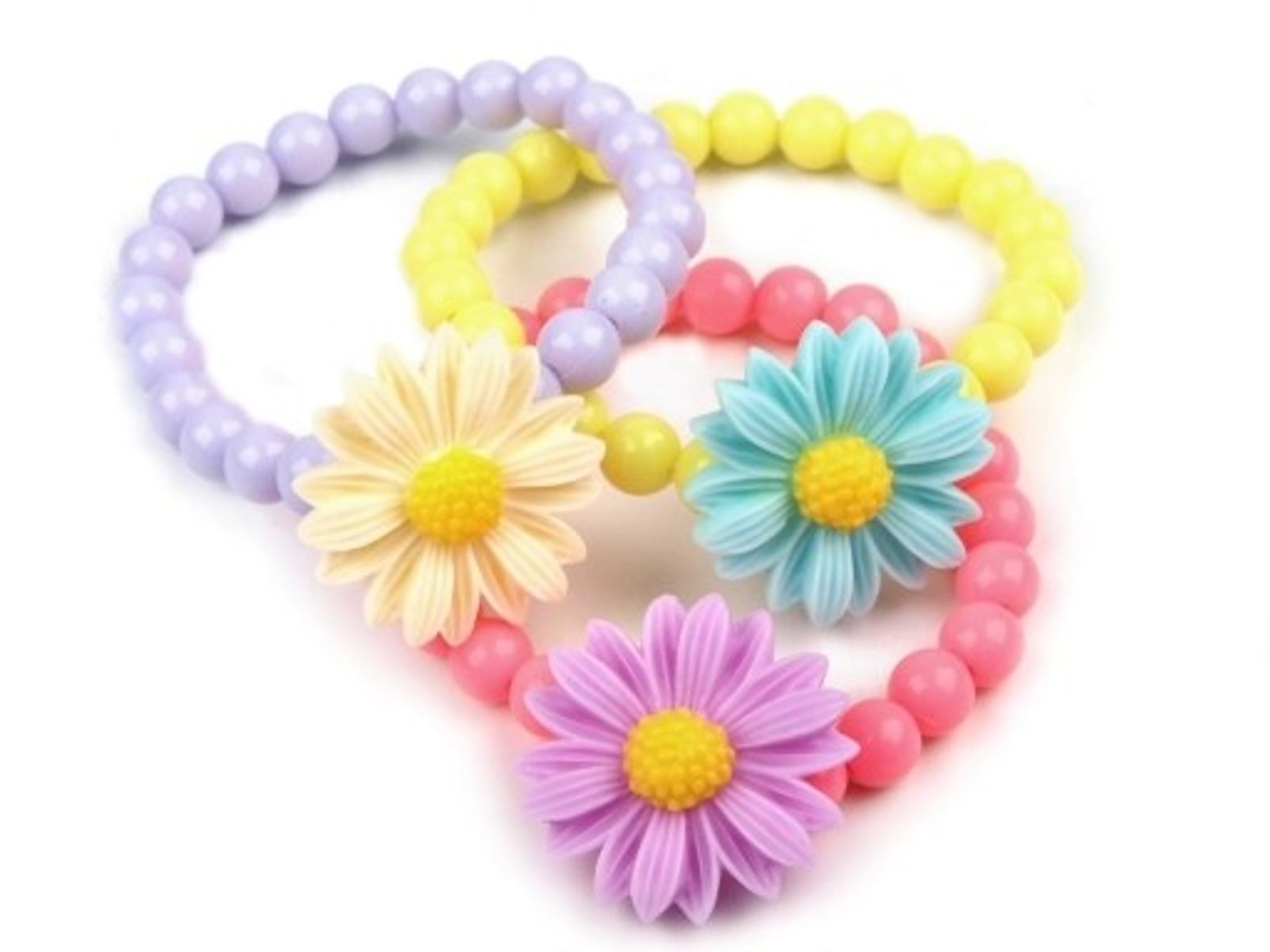 Dětské náramky mohou být kovové, plastové či korálkové. Především náramky s barevnými korálky se mezi malými slečnami těší velké oblibě. Náramek by měl být opatřen pružnou gumičkou, díky které si ho vaše malá slečna sama pohodlně oblékne. V podobném stylu se vyrábějí i dětské náhrdelníky. Ty mohou být také kovové a delší a jen se převléknou přes hlavu. Oblíbené jsou rovněž přívěsky, které jsou zavěšené na kožené gumičce.