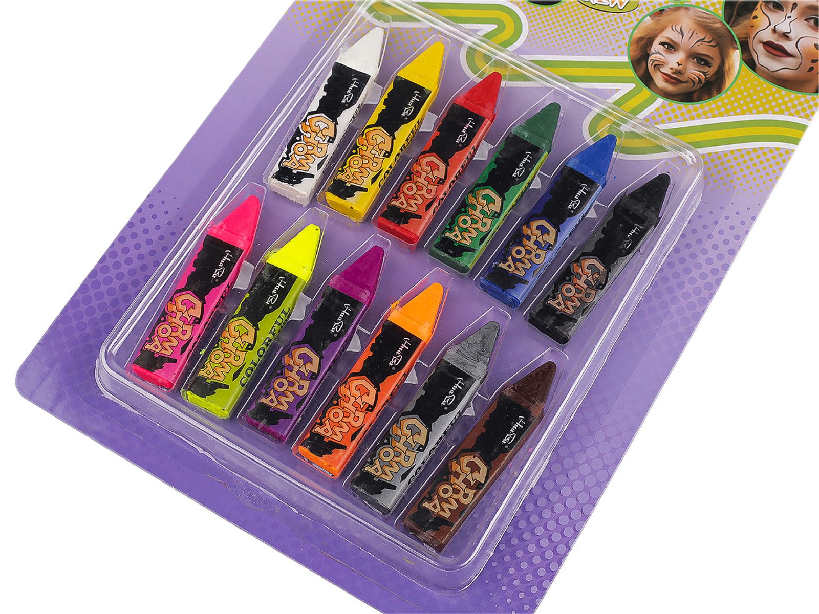 Barvy na obličej a tělo v tyčince využijete na karnevaly, párty a různé oslavy. Snadno se aplikují, jsou lehce omyvatelné mýdlem a vodou nebo odličovacím mlékem. Nanášejte je na čistou a suchou pokožku. Lze je použít i jako běžné pastelky na kreslení na papír.Sada obsahuje 12 barev.