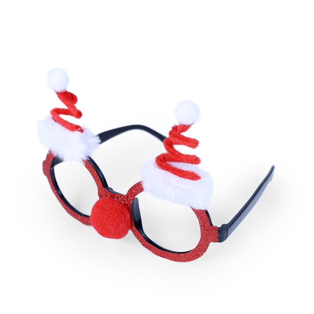 Karnevalové brýle ve vánočním stylu! Brýle jsou vyrobeny z PVC a zdobeny motivem vánočních čepiček Santy. Perfektní doplněk na Vánoce!