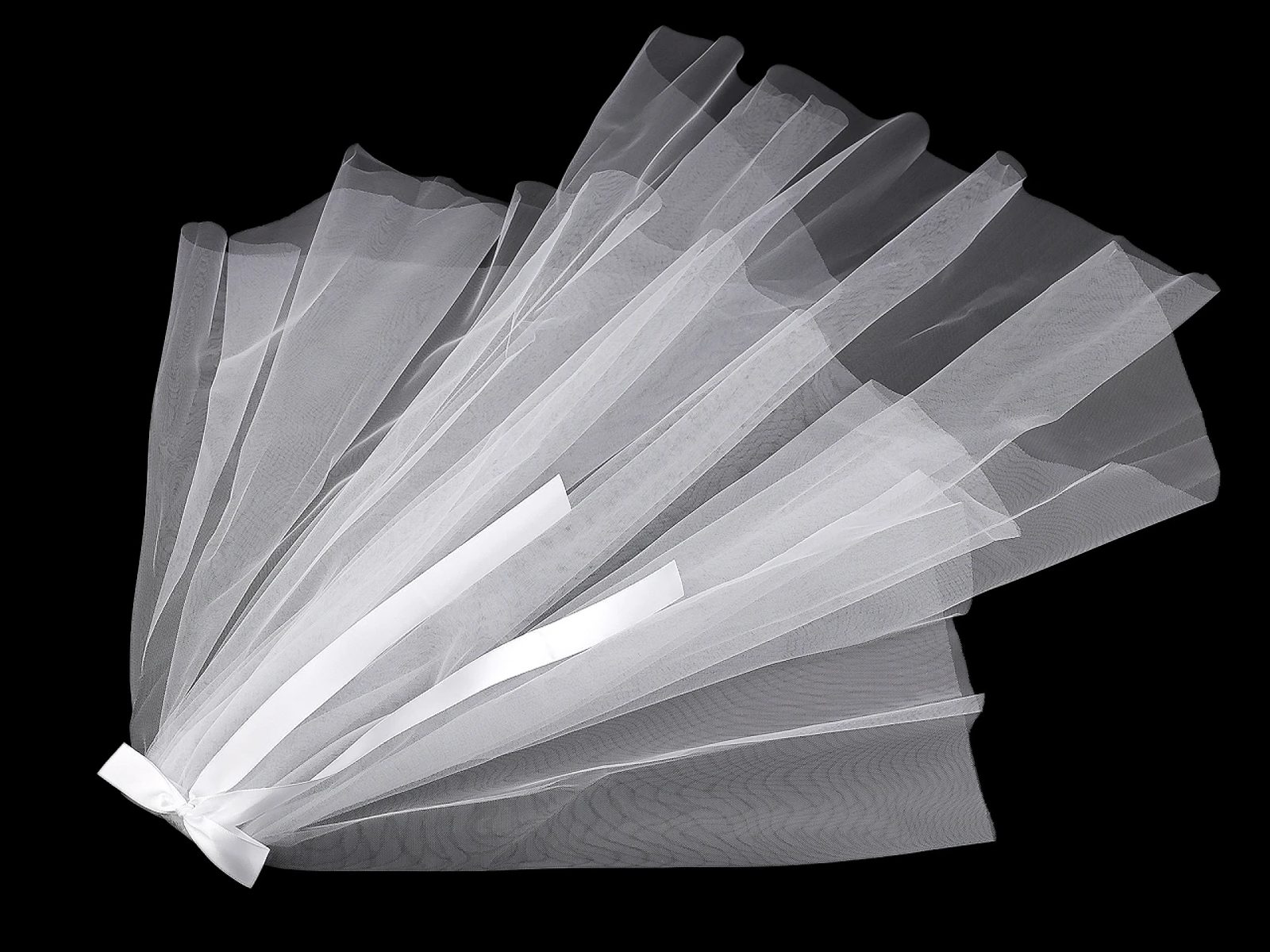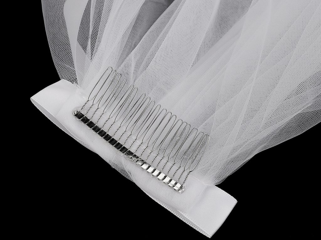 Závoj do vlasů využijí budoucí nevěsty na rozlučku se svobodou, ale i malé slečny, které potřebují převlek za nevěstu nebo princeznu. Zdobí ho saténová mašle. Kovový hřebínek zajišťuje jednoduché a bezpečné připevnění do účesu.Závoj nemá obšitý okraj.