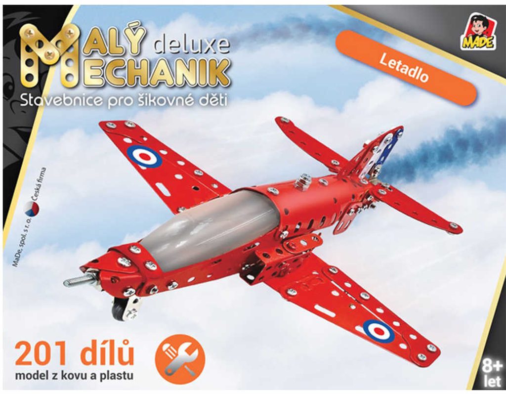 MALÝ MECHANIK Letadlo 201 dílků kovová STAVEBNICE typu Merkur