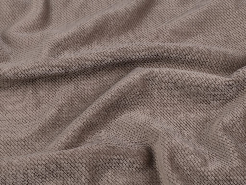 Velvet je hladký a příjemný na dotek, vzhledem trochu připomíná samet. Má strukturu cihliček a pruží po šíři. Velvet je vhodný na šití dek, polštářů, zavinovaček nebo hnízd pro děti. Můžete ho použít také na šití oblečení pro děti i dospělé.- Šíře:: 164 - 170 cm