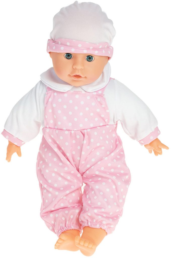 ****36 cm velké miminko Bambolina Amore. Miminko má měkké tělíčko a hlavička, ručičky a nožičky jsou z vinylu. Miminko vydává 4 melodie a různé dětské zvuky. Výrobek vyžaduje 3× LR44 baterie (baterie nelze vyměnit). Součástí balení je lahvička. Vhodné pro děti od 2 let.