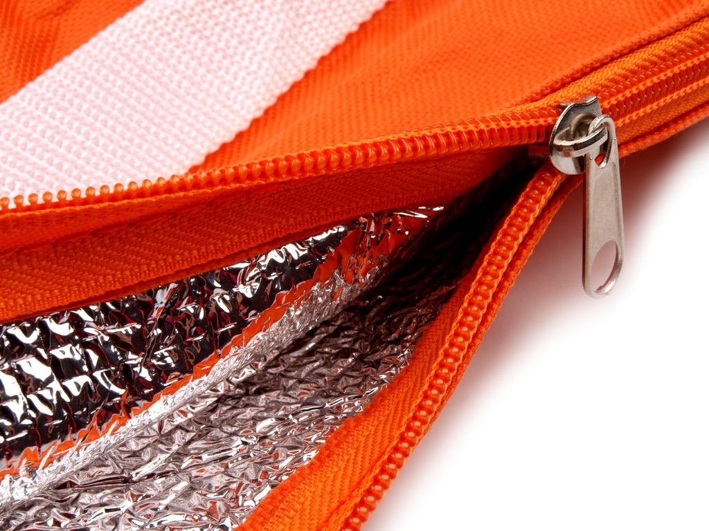 Chladicí tašku v modních barvách můžete složit do ruličky a pomocí patentu z magnetizujícího kovu zapnout. Můžete ji použít na nákupy v parné létě či na pikniky nebo na pláž.. Její předností je, že uchová potraviny po určitou dobu při stejné teplotě. Na přední straně tašky je kapsa na drobnosti. V hlavním úložném prostoru naleznete izolační vrstvu, která je omyvatelná. Taška je vyztužena polyesterovým vláknem, proto dobře drží tvar a udržuje teplotu. Celá je uzavíratelná zipem. Rozměry tašky jsou 37 x 45 cm. (výška x šíře). Rozměry dna jsou 18 x 28 cm. (šíře x délka) Ucha: délka od tašky 27 cm. Celková délka je 70 cm. Objem 18 l. Rozměry viz foto.