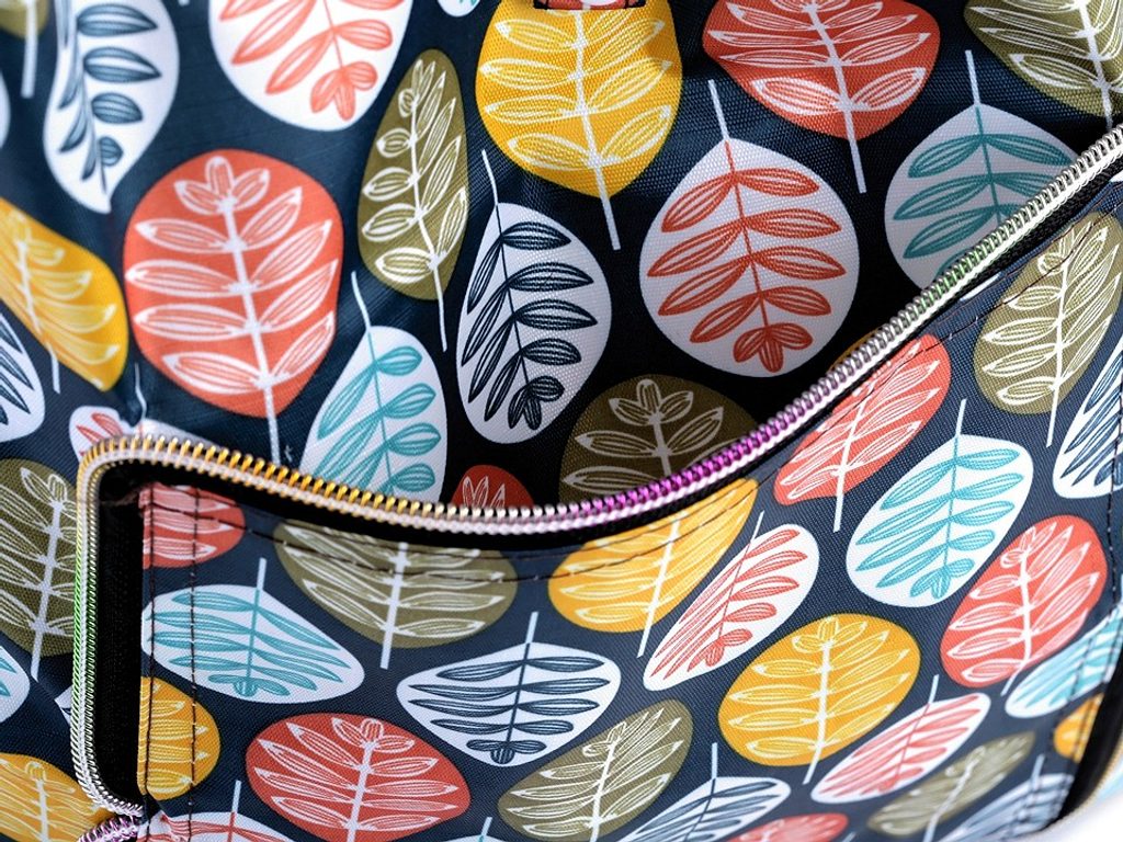 Taška nemá obal, díky důmyslným zipům na kapse se zapíná sama do sebe.